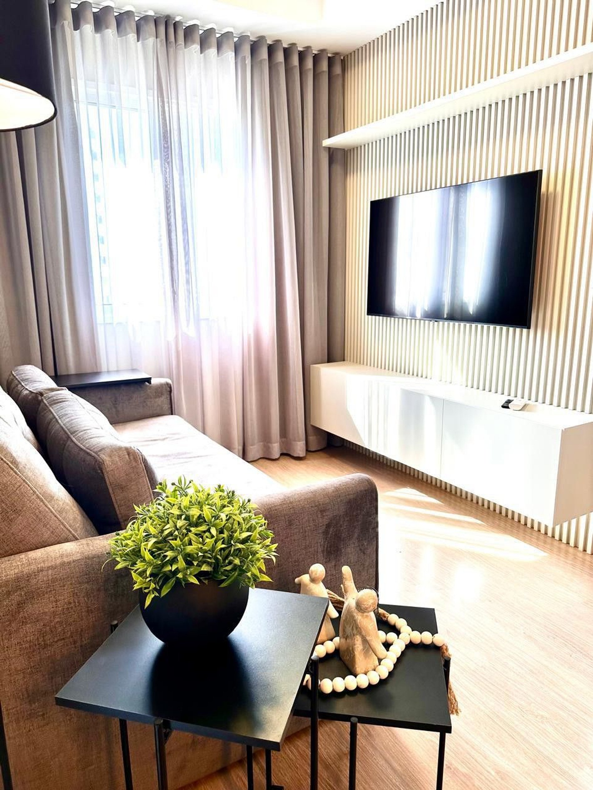1. Sobre o Apartamento - Wi-fi Internet fibra - 500 Mega - Cama queen size – Enxoval completo 100% algodão - Ar condicionado, sala e quarto - Split - 12.000 Btus - Cozinha completa e equipada ( panelas, utensílios, talheres, copos, taças cristais, pratos, forno elétrico, cooktop, exaustor, micro-ondas, sanduicheira, liquidificador, garrafa de café, filtro e cafeteira Nespresso). - SmartTV 50 pol - sala e 32 pol Quarto - Ducha Kdt 6 Temperaturas - Sofá-cama Queen - Self Check-in - Cortina 100% black-out 2. Sobre o condomínio - Acesso Wi-Fi em todas as áreas, gratuitamente. - Piscina para estadias superiores a 30 dias - Academia, independente do número de diária. - Co-working, independente do número de diária. - Portaria 24 horas. 3. Localização - Faça tudo a pé - 200 metros do Aurora Shopping - 200 metros Super Muffato - 200 metros farmácia - 2 quarteirões Lago Igapó - Restaurantes e barzinhos na região.